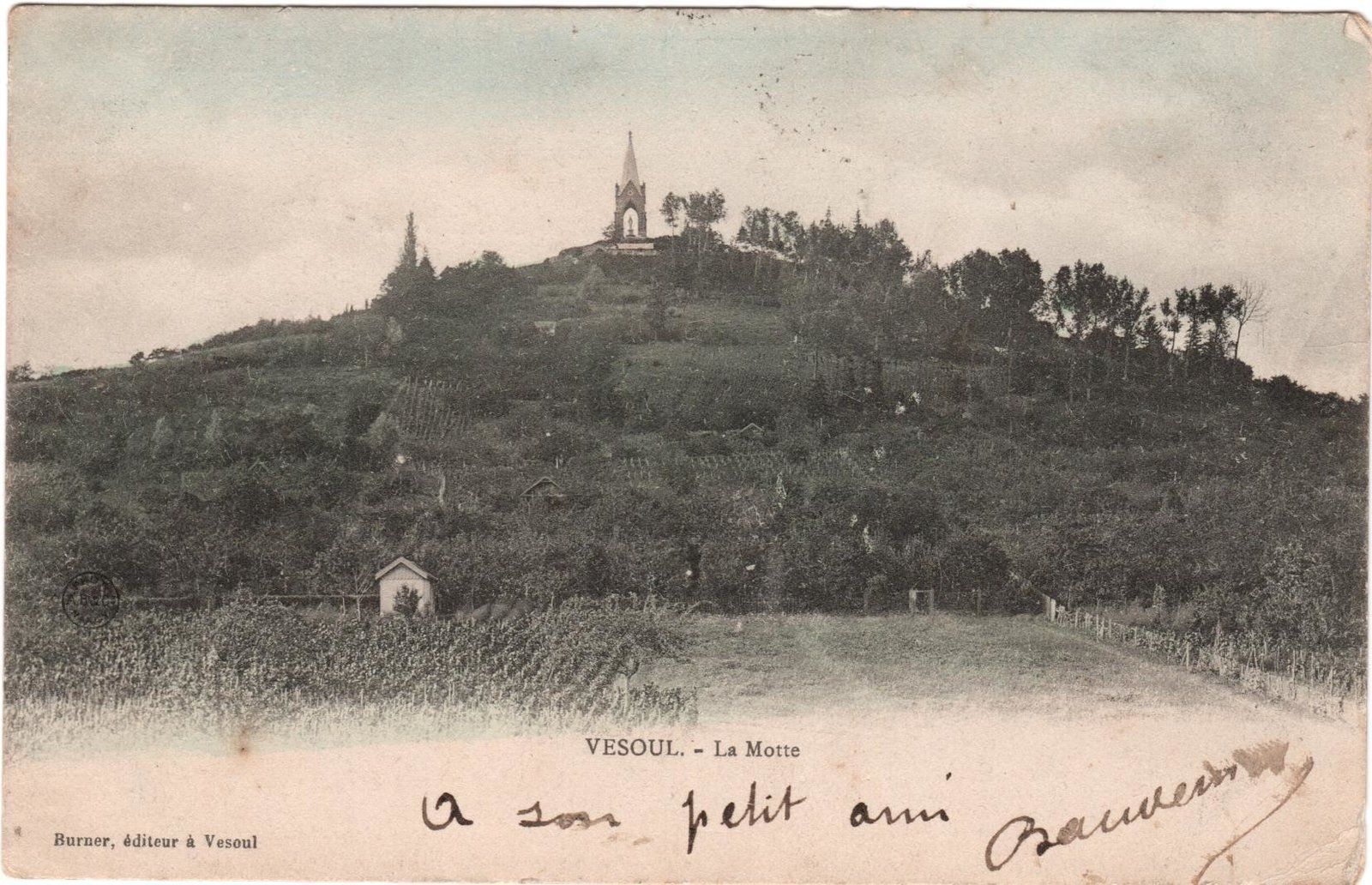 Le 28 juin 1916, le curé de Vesoul, Louis Saunier, demande l’autorisation au préfet de la Haute-Saône d’ériger une statue de Saint-Michel avant la fin de la guerre, à côté de la grotte de la Motte, dans l’espoir d’une nouvelle protection divine pour ses fidèles Vésuliens dans ces temps de guerre.